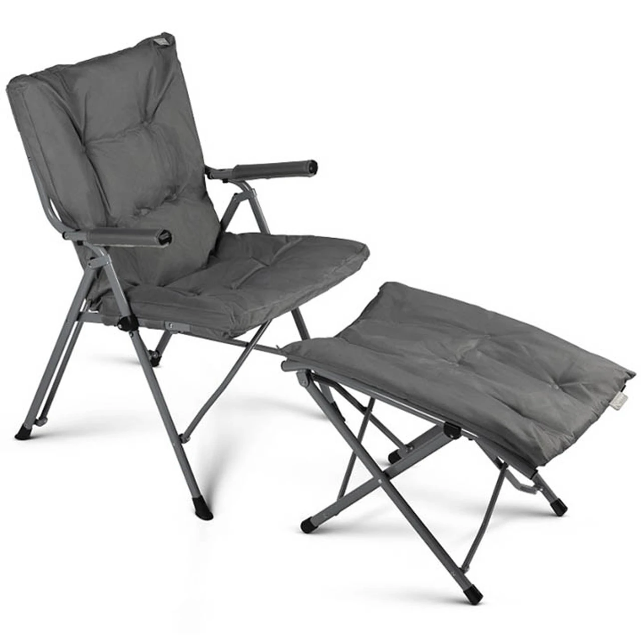 Sit back and relax in comfort with the a Kampa Dometic Chief camp chair. This oversized padded camp chair is available with an optional matching foot stool. The Kampa Chief chair folds down for easy transportation and storage. Includes carry bag.