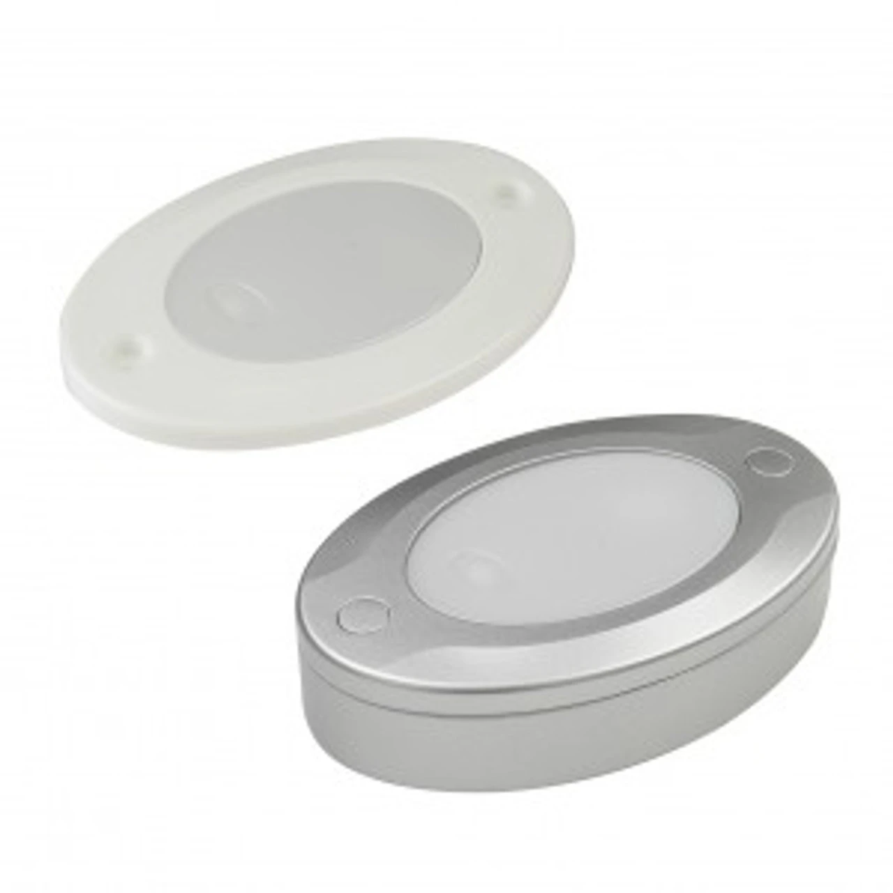 An oval shaped courtesy light with a safe, practical click-switch lens, the Lumo EyeLite Caravan Light is ideal for use as a reading light for the kids, entrance lamp or even bathroom mirror light and features a novel, satin coloured stylish design and is suitable for recess fit or surface mount. This light is a sealed unit with no access to the Halogen bulb.
