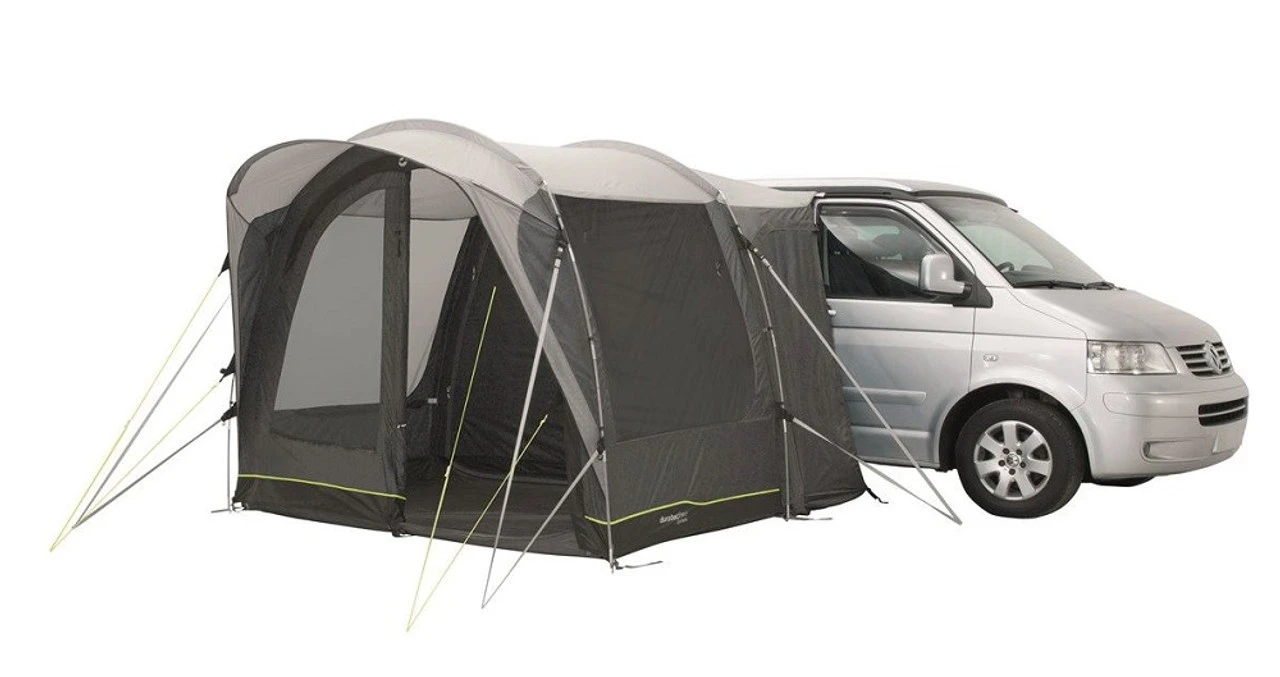 Outwell Newburg 160 drive away awning is designed for use with VW, Ford Transit and similar sized campervans. This easy and quick to pitch drive away awning features a spacious living area ideal for additional living space or storage during camping trips and holidays. The Outwell Newburg 160 drive-away awning is a tunnel tent style awning with a central inside pole along the roof line, side access via doors at the front and back of your campervan and has a height range of 175cm-200cm via beading options (5mm and 7mm).